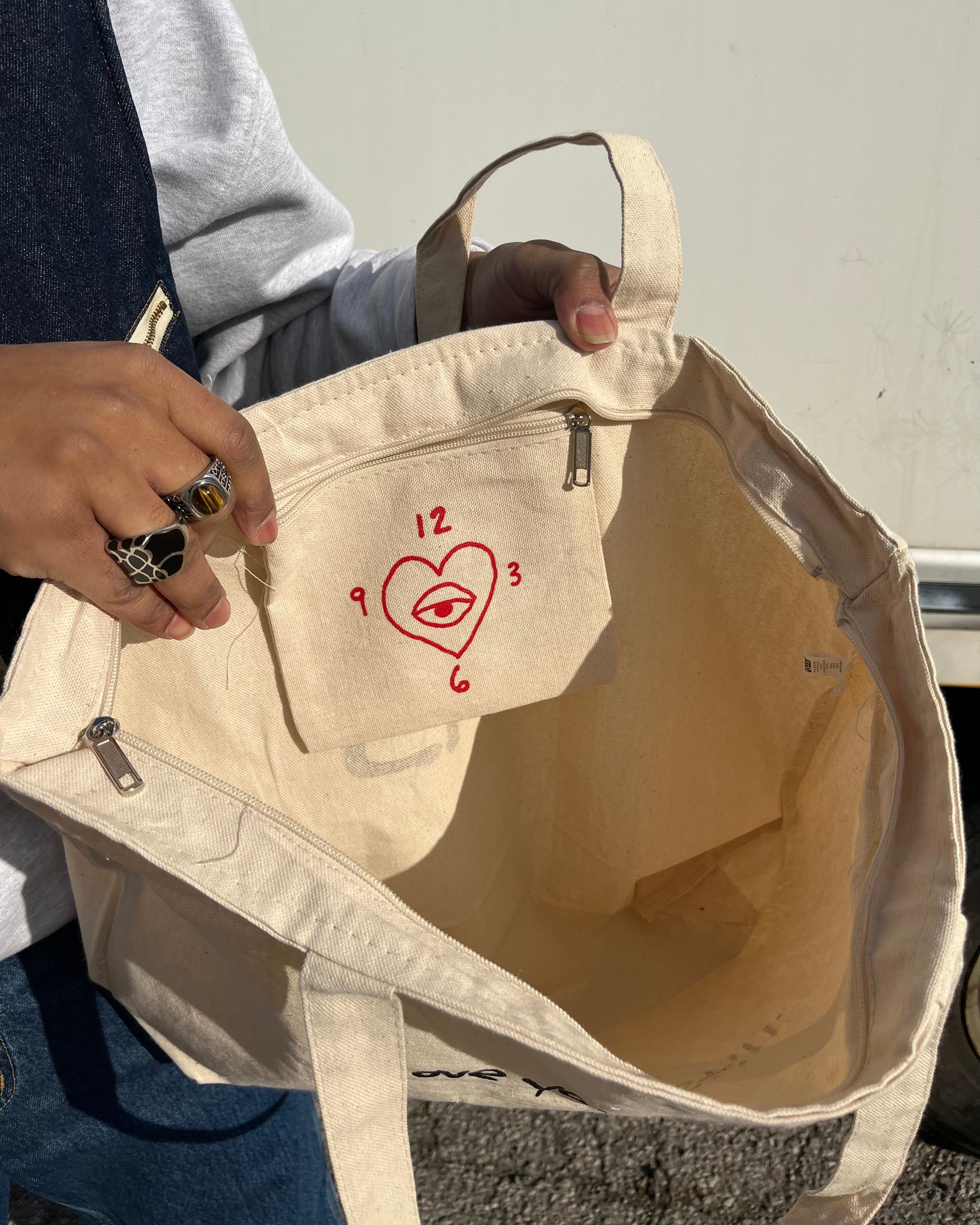 100% cotton canvas zipper tote with interior pocket to keep close what matters most <3 printed in Toronto.